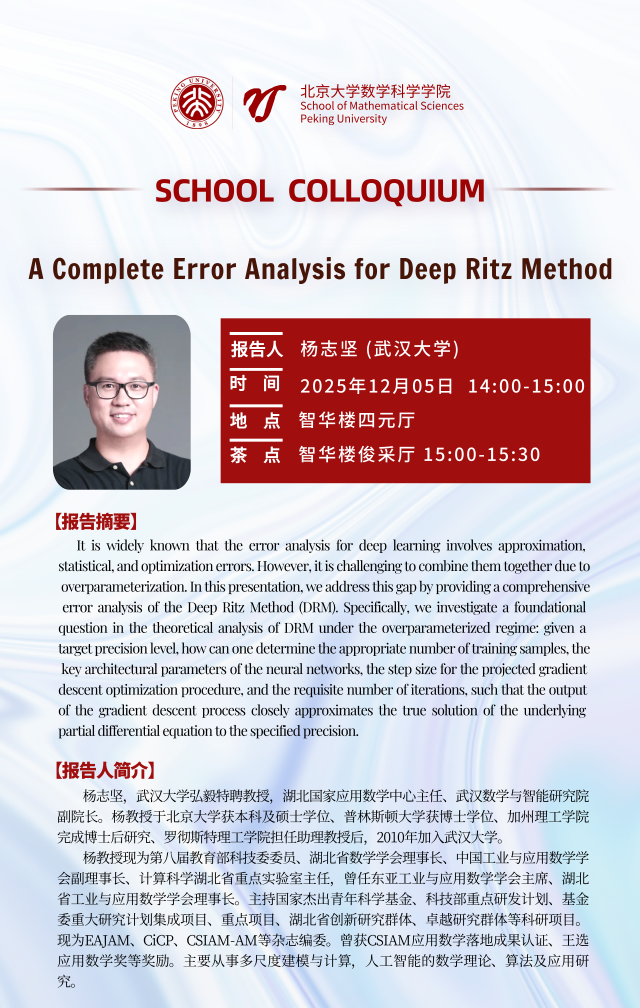 School Colloquium——A Complete Error Analysis for Deep Ritz Method