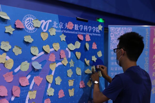 新生留言板上,留下了每一位新生对数院生活的期待,有激动、有坦率、有梦想、有期许。其中有一张空白的贴纸,留下这张空白贴纸的是来自南京外国语学校的陆苏扬同学。他说燕园对他来说,意味着无限可能,希望未来自己能描绘出全新的蓝图。