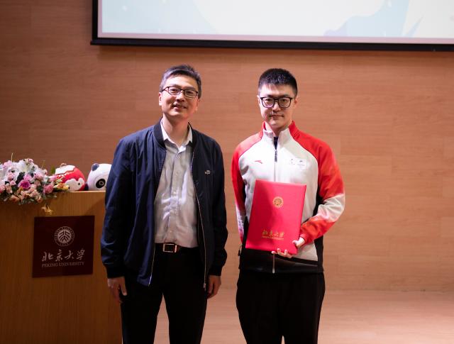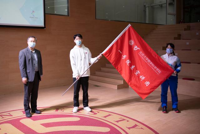最后,一号院系宣讲团正式成立,院长陈大岳为宣讲团授旗。征程万里风正劲,重任千钧再扬帆,一号院系宣讲团自去年开始探索,先后举办了“数与人生”,“平凡数语”,“数述万千”等主题宣讲,走进河北雄安,深入乡间田野,宣讲数院故事。在后冬奥时代,一号院系宣讲团将继续致力于讲好数院故事,展现北大青年的青春风采。
