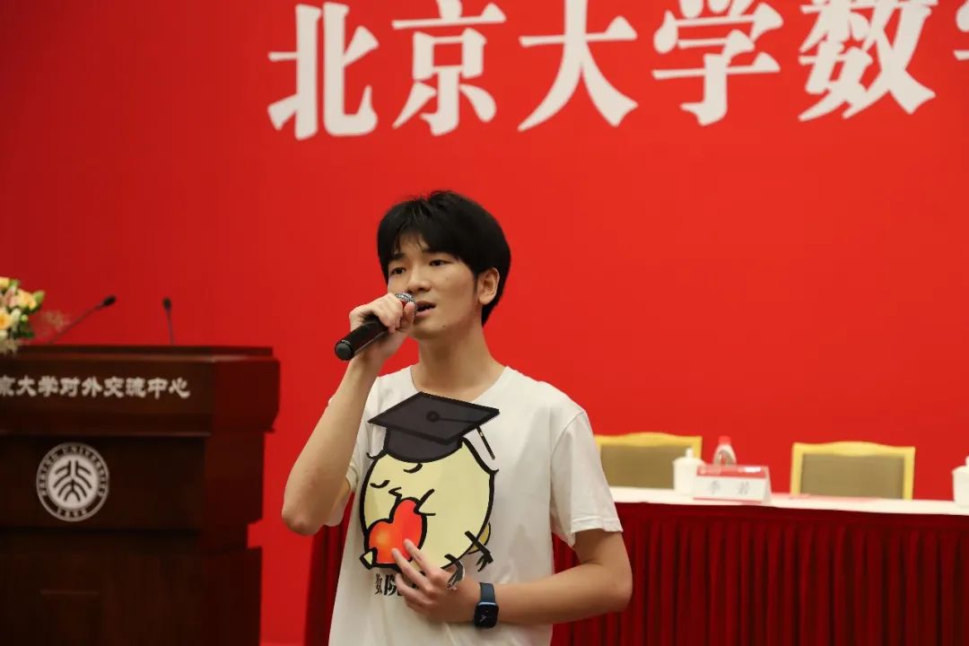 周蜀林作为教师代表发言,他鼓励同学们珍惜线上学习提高的自学能力,主动发现问题和解决问题,做自己的导师,勇敢闯荡外面的世界,并欢迎大家有朝一日回归燕园,建设北大数学。
